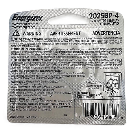 Regular price $20.00Unit price /UnavailableVery low stock (3 units)Energizer 2025 3V Battery Child Secure 4 Pack