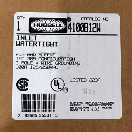 Regular price $22.00Unit price /UnavailableVery low stock (6 units)Hubbell 4100B12W - 100 Amp Pin and Sleeve Inlet
