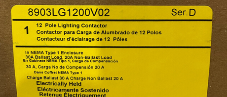 Square D 8903LG 30 Amp, 12 Pole, 600V Lighting Contactor