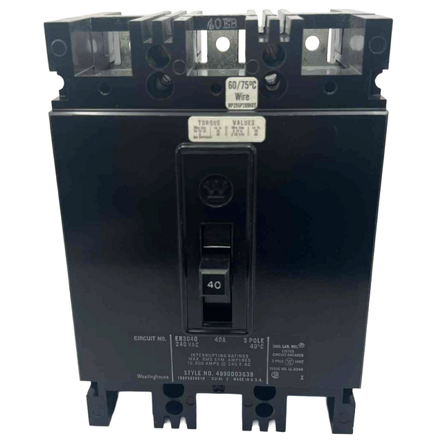 Eaton EB 40 Amp, 3 Pole Bolt-On Circuit Breaker